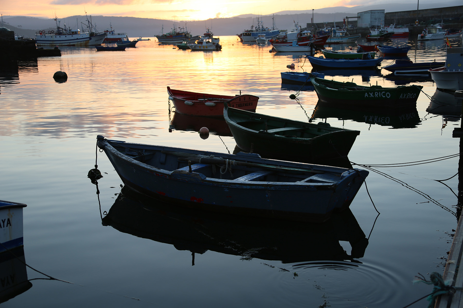 My favorite harbor for finding these old, weathered boats is on the Costa da Morte in northwestern Spain at Finisterre ("End of the Earth"). This large and deep harbor is on a small peninsula or cape extending west into the Atlantic near Santiago de Compostela.
